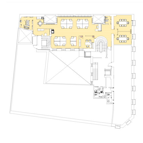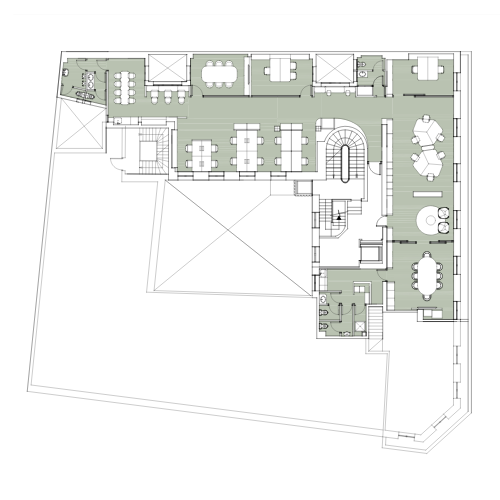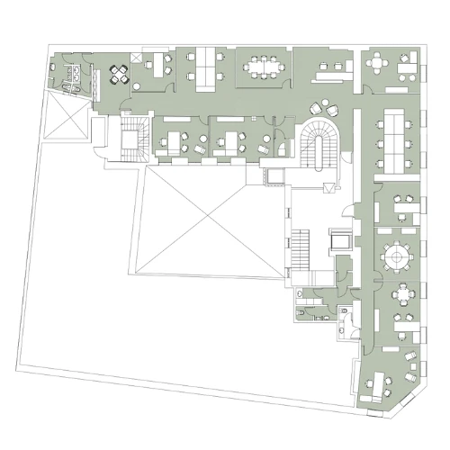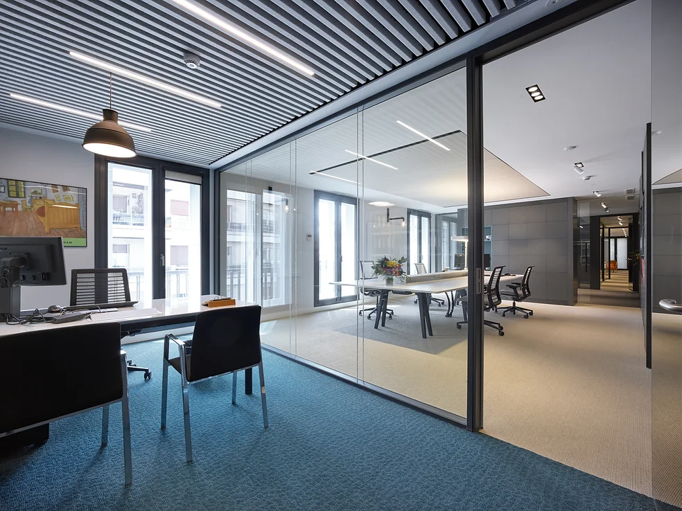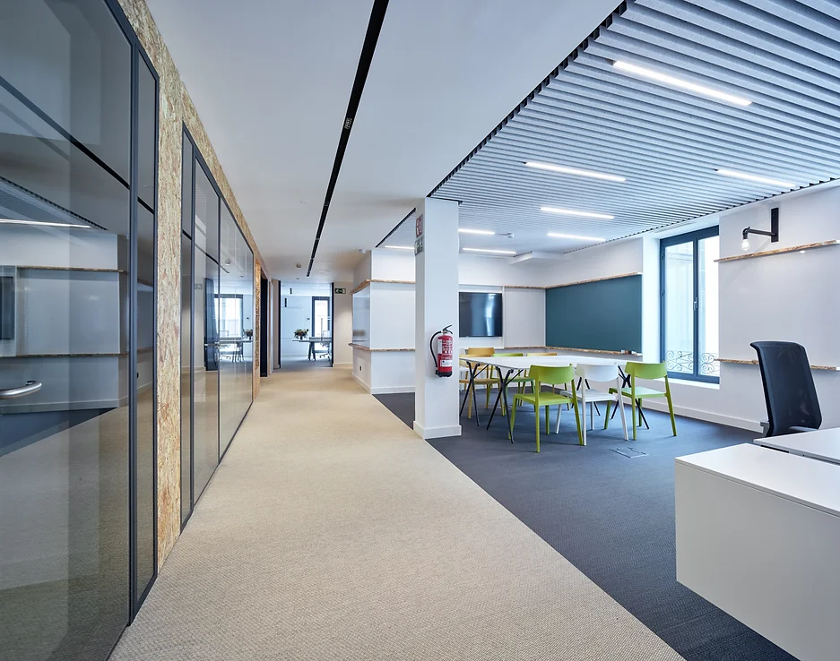 Plantas diáfanas y modulables, divisibles en dos espacios independientes, con propuestas de distribución pensadas para optimizar confort y funcionalidad. Cada planta cuenta con dos ascensores, sistemas de climatización frío/calor con aire exterior y red de conductos para una experiencia térmica eficiente y homogénea.